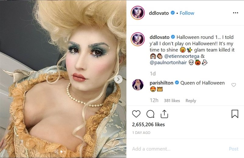 Some celebrities and stars go all out for Halloween and this year Demi Lovato is one of them. The singer, songwriter, and actress posted a photo of herself on Instagram pulling off the Marie Antoinette look for a Halloween event. Lovato was dressed in a corset, thick white makeup and topped her look with a huge bouffant wig. Lovato’s makeup and hair were completed by hairstylist Paul Norton and makeup and hair artist Etienne Ortega.