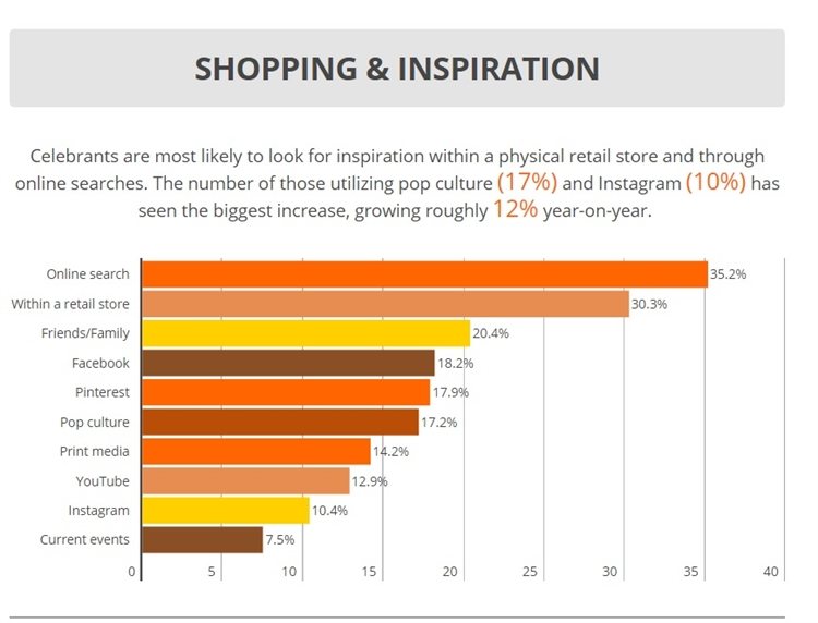 Many also utilize pop culture and Instagram for ideas, and the NRF stated that this type of inspiration has grown about 12% year-on-year. Check out the full chart below to see the breakdown!